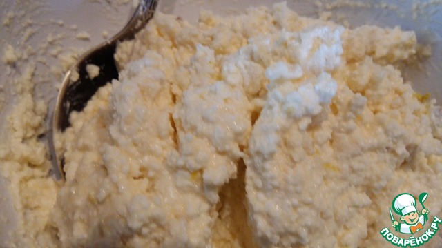 Все ингредиенты смешать, добавить 1 сырое яйцо, лимонную цедру и ванильную эссенцию. Можно добавить сахар по вкусу. Поставить в холодильник на 1 час.