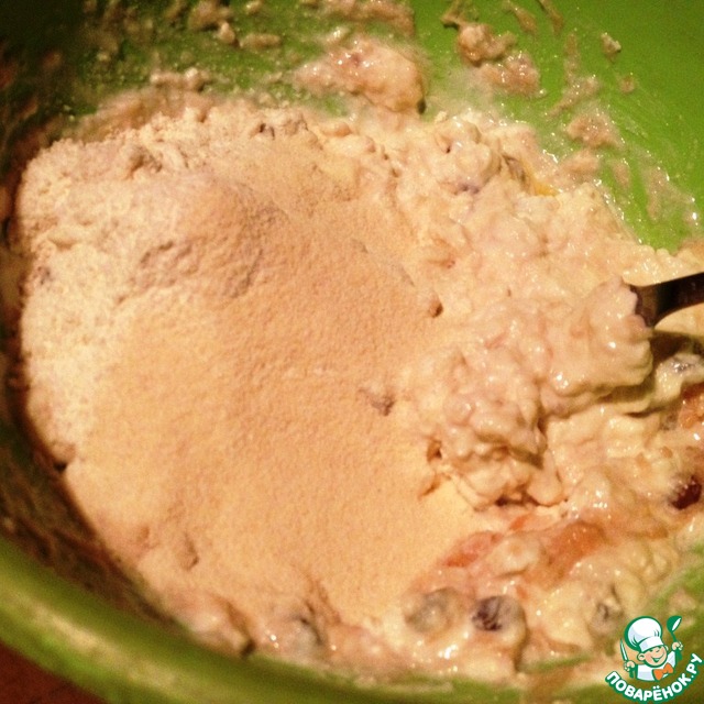 Добавить очищенное и натёртое на мелкой тёрке яблоко, муку, манку. Перемешать.