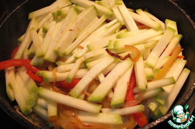Добавляем кабачок и готовим еще 5 - 7 мин.