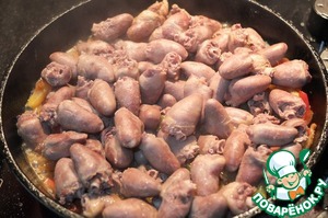 Добавляем сердечки, перемешиваем, обжариваем несколько минут. Подаем теплым.