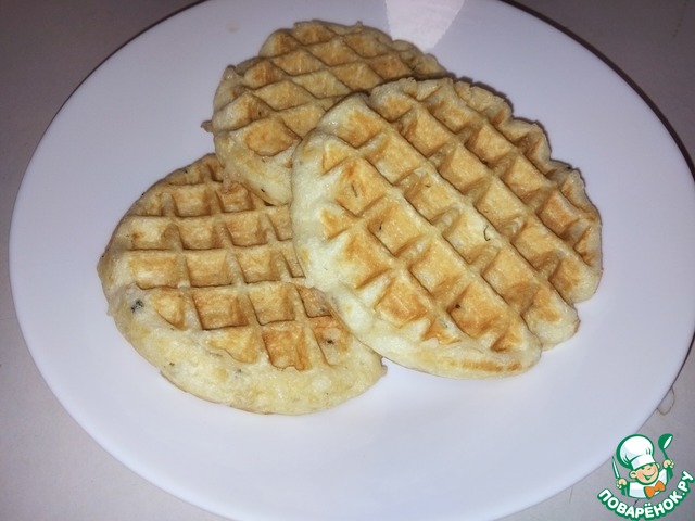 В воскресенье так хорошо выпить чашечку чая в семейном кругу с тёплыми вафлями. А взрослым можно и кофе предложить. Эти несладкие вафли по достоинству оценят любители сыра. Ещё одно блюдо по мотивам рецепта Маши-mellorn. Тёзка, спасибо! Хочу сказать, что у Маши потрясающие рецепты, выверенные, проверенные. Я готовила и готовлю по ним достаточно часто. И не беда, что рецепты не отличаются красивыми постановочными фото. Вкус от этого не страдает.