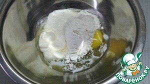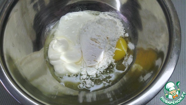• Объединяем венчиком муку-сметану-майонез -яйцо в жидкое тесто. Я готовлю без соли - привычка. А вы - на ваше усмотрение.