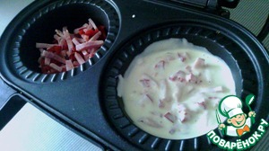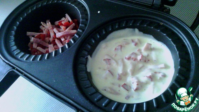 • Заливаем начинку тестом, включаем ростер в розетку и таймер на 10 минут