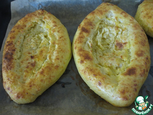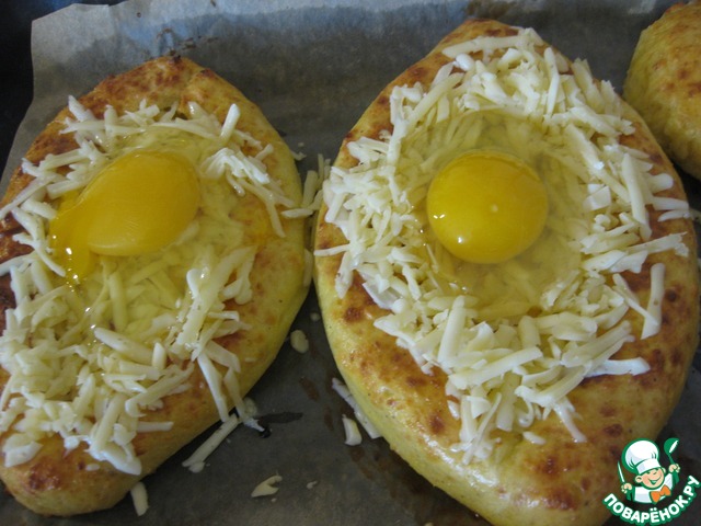 Достаем наши готовые А-ля хачапури, по желанию можно смазать края сливочным маслом.