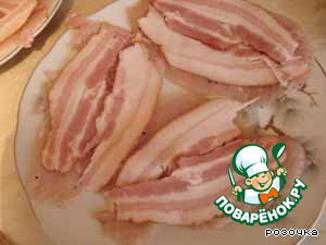 Сверху выкладываем тонкий ломтик бекона.