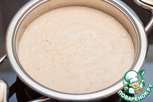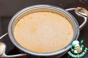 На дно я положила круг из пергамента, чтобы не повредить нежный чизкейк, когда придет время его извлекать. Вылейте творожно-тыквенную массу в сотейник, накройте крышкой и поставьте на самый слабый огонь. Дождитесь, когда стрелка термоконтроллера достигнет начала зеленой зоны и снимите с огня. Оставьте чизкейк под крышкой еще на 10-15 минут.