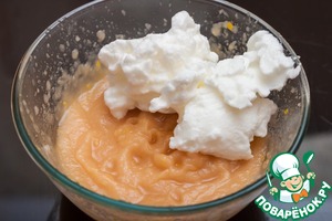 Отделите белок одного яйца и взбейте его в крепкую пену, добавьте к яблочному пюре и аккуратно перемешайте снизу вверх.