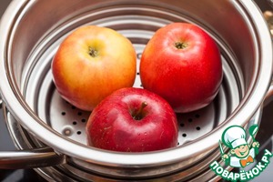Яблоки наколоть вилкой и поместить в пароварку Zepter, установить ее на кастрюлю с любым готовящимся блюдом - в посуде Zepter запахи и вкусы не смешиваются, поэтому можно готовить одновременно десерты и рыбу, например. У меня тушились овощи.