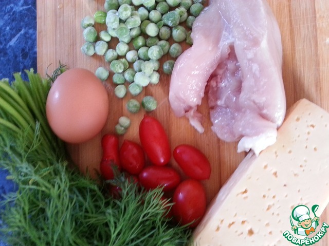 1. Ингредиенты тщательно вымыть в теплой воде ( за исключением сыра), а горошек разморозить.