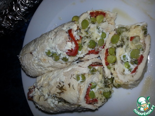 Рецепт «Куриные рулеты с зеленым горошком»: