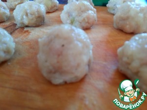 Формируем из фарша небольшие фрикадельки, размером чуть меньше чем грецкий орех. Я обычно делаю с запасов и замораживаю.