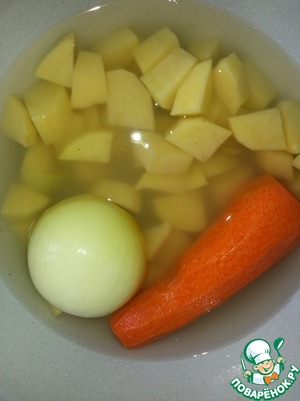 Чистим овощи, картошку нарезаем небольшими кубиками