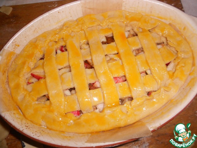 Хрустящее тесто, нежная яблочная начинка с корицей. Вкусно, просто готовится. Подавать можно с мороженым или взбитыми сливками. Мы съели просто так, очень вкусно...