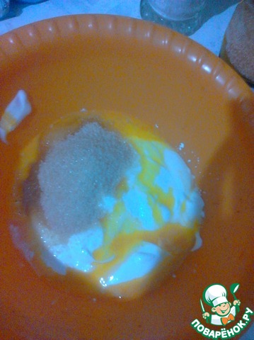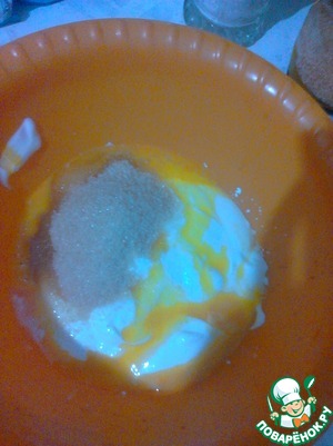 Для начинки соединить сметану с яйцом, яичным желтком, ванилином, сахаром и крахмалом.