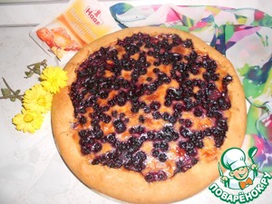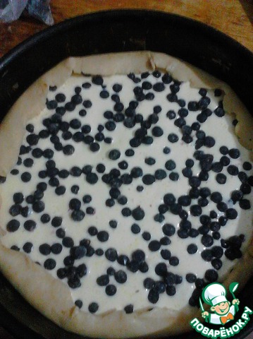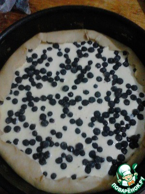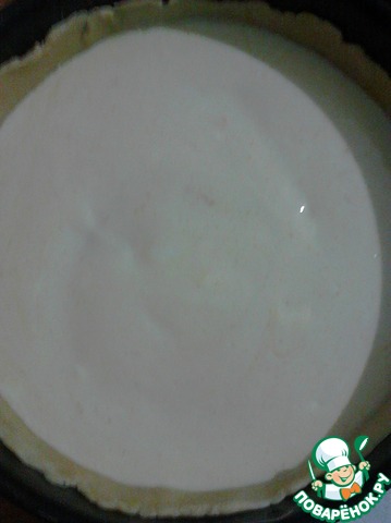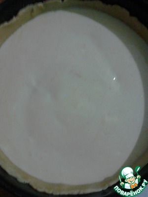 Тесто вынуть из холодильника, раскатать в пласт, вылить на него сметанную начинку.
