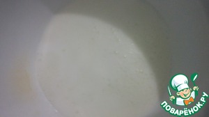 2/3 молока доводим почти до кипения, оно должно быть горячим, но не кипеть.