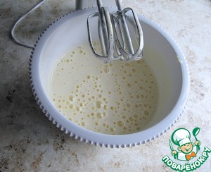Постепенно всыпать сахар и продолжать взбивать до образования устойчивой пены.