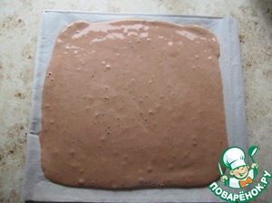Противень застелить бумагой для выпечки, вылить тесто, разровнять. Выпекать в предварительно разогретой до 180 С духовке до готовности (проба на сухую лучинку).