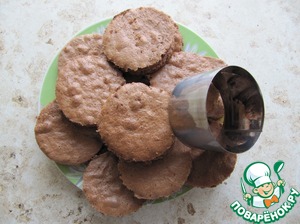Металлическим кольцом вырезать формы (12 шт) большего диаметра и из обрезков вырезать формы меньшего диаметра.