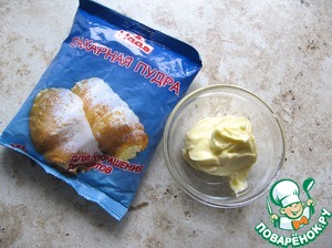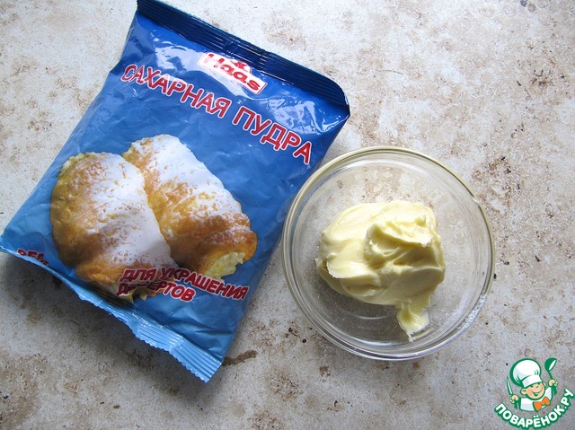 Для приготовления крема для склеивания половинок сливочное масло комнатной температуры взбить с 50-80 г сахарной пудры с ванилью "HAAS" (кол-во регулируйте под свой вкус!).