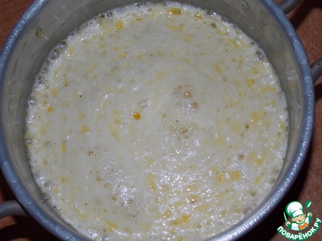 Снять медовую массу с огня и добавить соду.