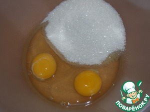 Яйца взбить с сахаром до бела.