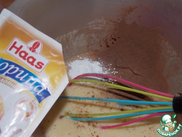 Добавить корицу, какао, разрыхлитель.