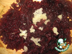В свеклу добавить измельченный чеснок.