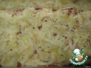 Свеклу, редьку, яблоко, сыр натереть по-отдельности.