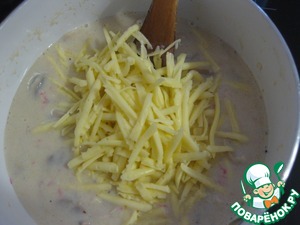 Добавляем сыр, выключаем плиту, перемешиваем