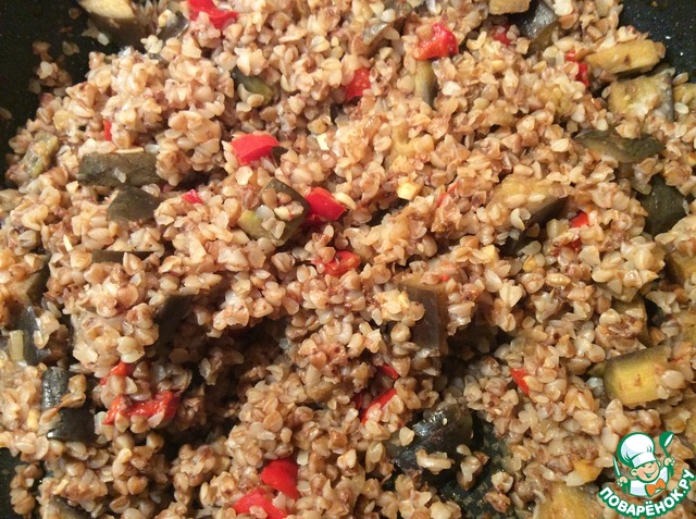 Гречку перекладываем в сотейник к овощам, перемешиваем, закрываем крышкой и томим на малом огне минут 15. Пробуем кашу на соль.