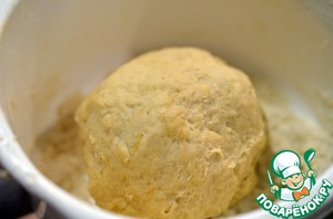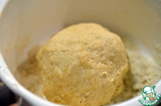 Добавить воду, замесить тесто. Убрать в теплое место на 30 минут.