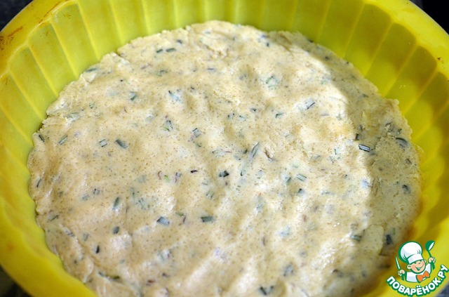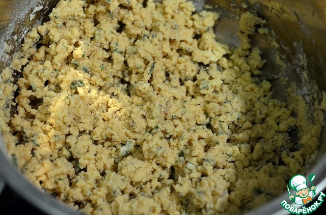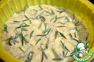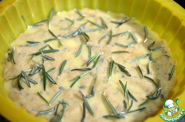 Добавить муку, тмин, измельченный розмарин. Не вымешивать сильно.