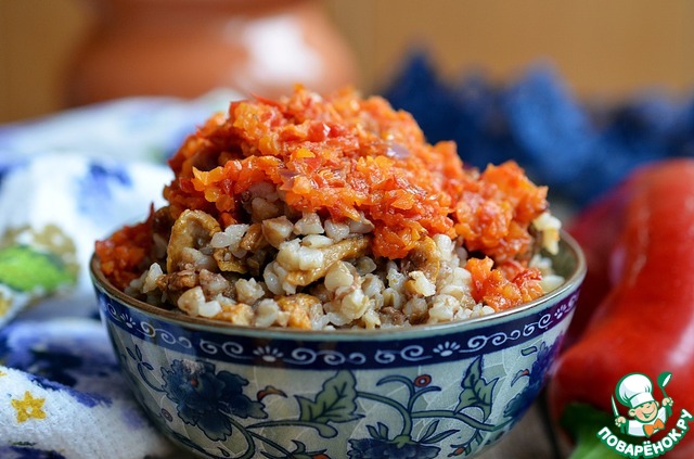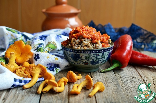 Рецепт «Гречка с лисичками под овощным соусом»: