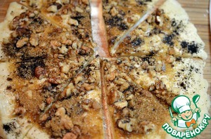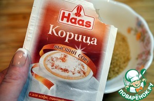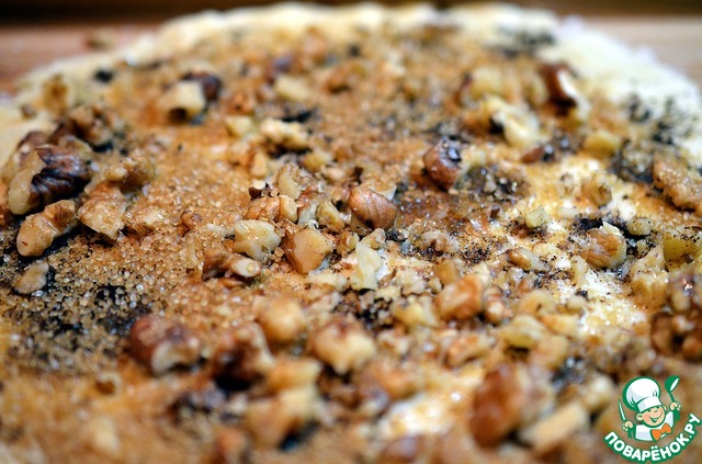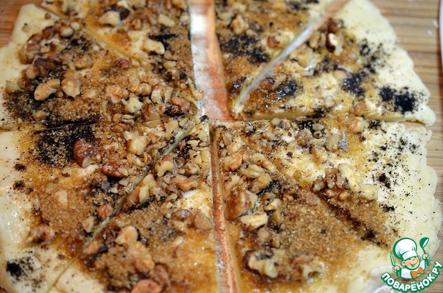 Посыпать 1 ст. л. порошка кофе, затем орехами, сверху коричневым сахаром и корицей.