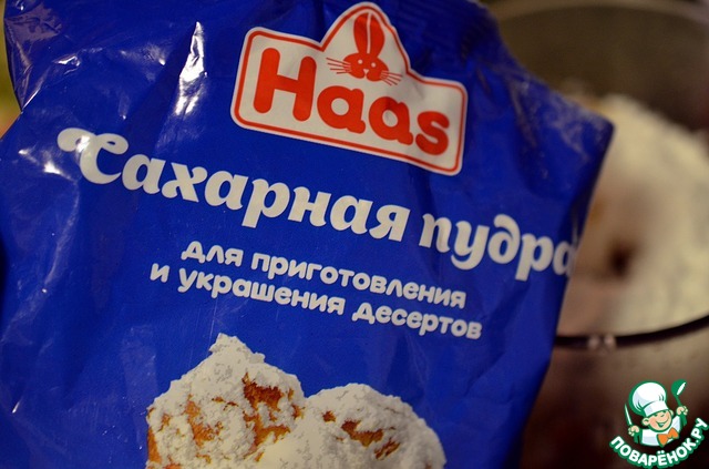 Миксером взбить половину масла и оставшиеся 3/4 стакана сахарной пудры. Для приготовления я использую сахарную пудру фирмы Hааs.