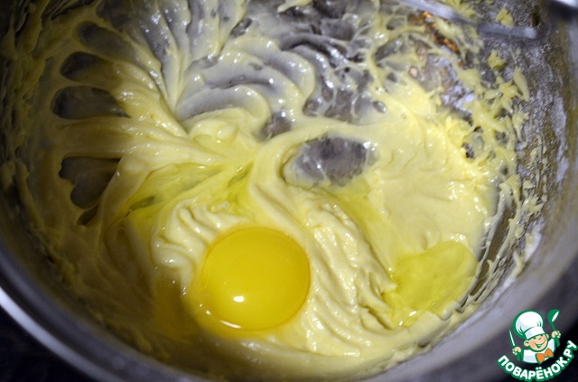 Добавить по одному желтки, тщательно взбивая после каждого.