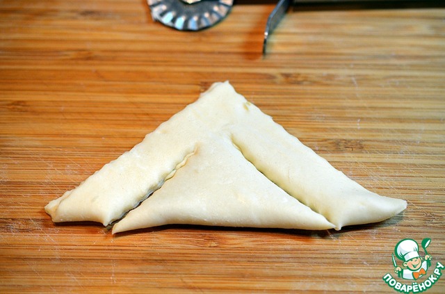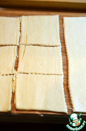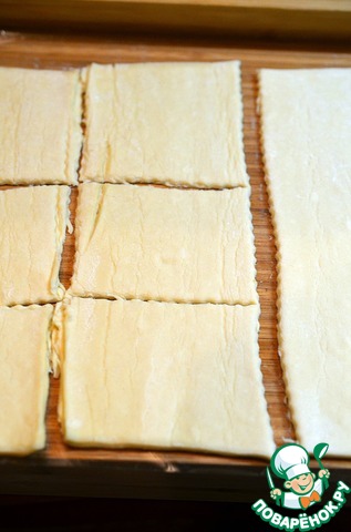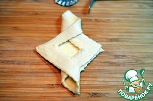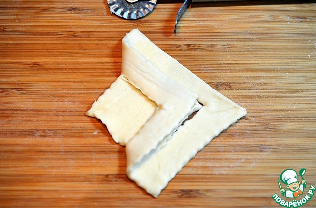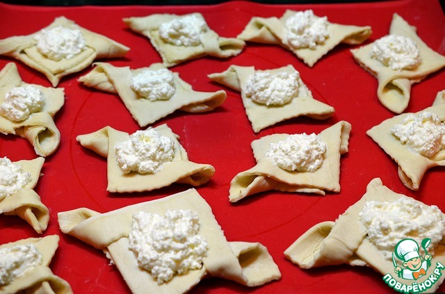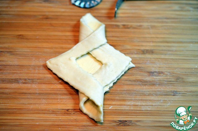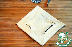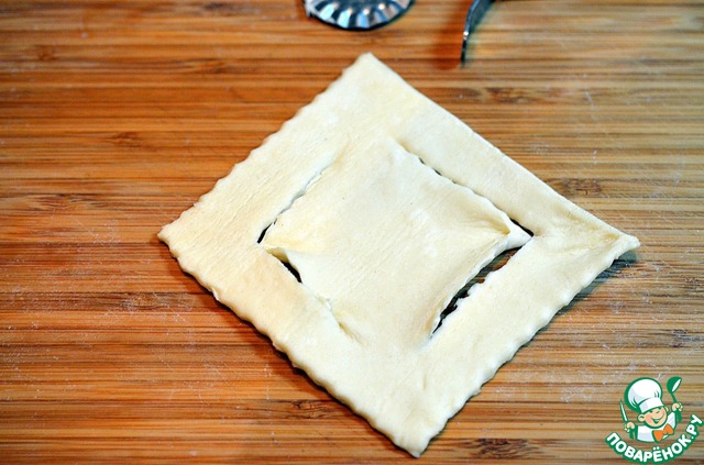 Смазать желтком, смешанным с молоком. В центр выложить начинку и ягоды по желанию.