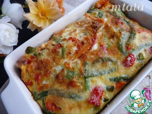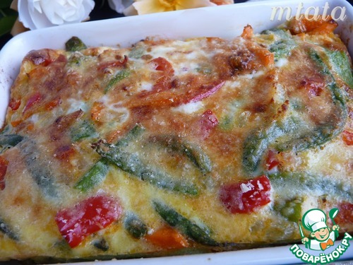 Предлагаю замечательную овощную запеканку с зеленой фасолью. Блюдо яркое, полезное и очень вкусное, готовится очень быстро. Вкусно как в горячем, так и в холодном виде. Можно использовать в качестве гарнира или как самостоятельное блюдо.