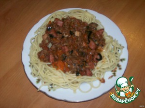 Сытный вкусный соус для спагетти, весьма вольная интерпретация знаменитого "болоньезе". Изобретение моей дочери, которое хорошо прижилось в нашей семье.