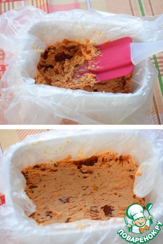 • Выстелить пленкой квадратную пластиковую формочку или баночки, выложить наше ароматное масло и хорошо разровнять лопаточкой.