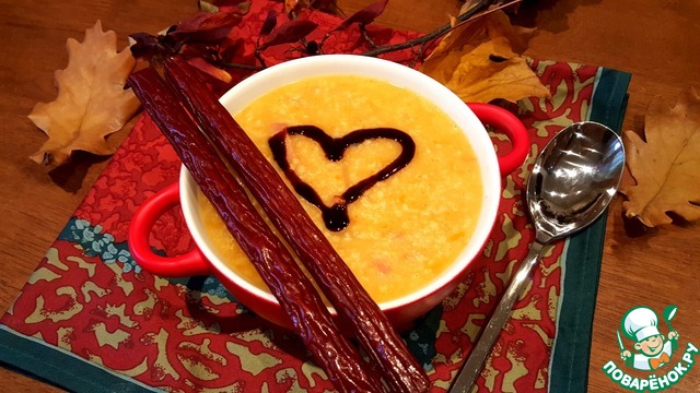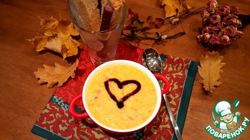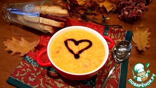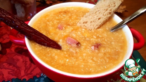 Сытный, яркий и вкусный суп. Совершенно неожиданный для меня рецепт. Я собралась варить гороховый суп, но оказалось, что гороха осталось всего 300 мл, а для нашей семьи это маловато. Поэтому я решила добавить для густоты супа пшено. Получился бесподобный суп. А вот младшей привереде пришлось сказать... что в супе "белый" горох вместе с обычным... и она смолотила всю тарелку!!! Угощайтесь!!!