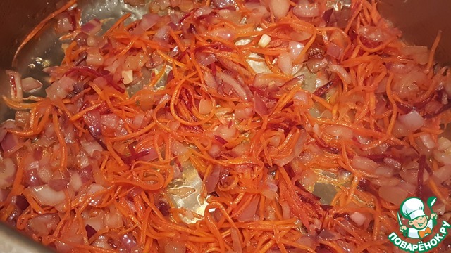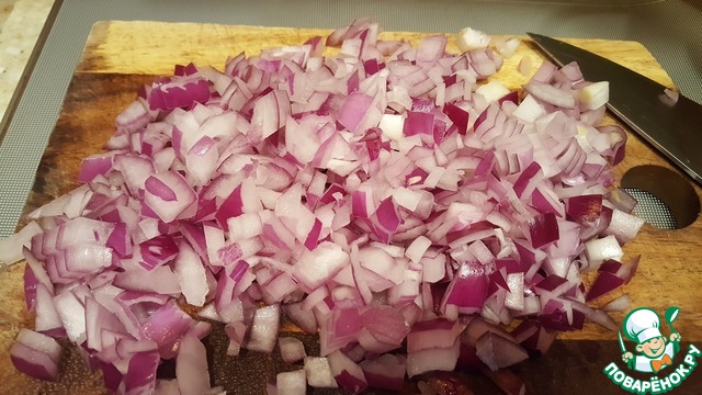 Я люблю в гороховом супе именно красный лук, но, конечно, можно использовать обычный репчатый. Нарезать мелким кубиком лук и морковь, или натереть морковь на тёрке для моркови по-корейски.