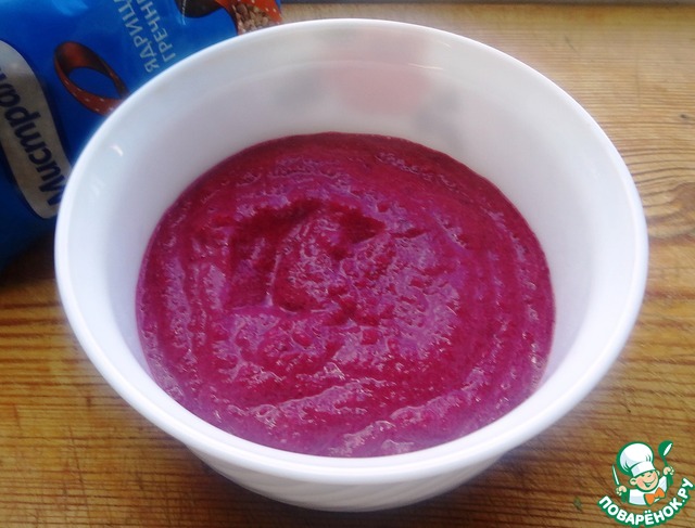 Измельчить в блендере свеклу и гречку. Добавить яйцо, йогурт, разрыхлитель, цедру и соль. Получится изумительно красивое тесто.