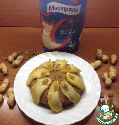 Рецепт «Манный пудинг с изюмом и яблоками»: