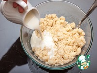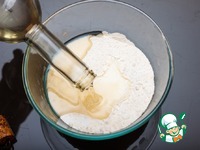 Влейте растительное масло, перемешайте. Тесто получится комковатым. |
