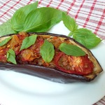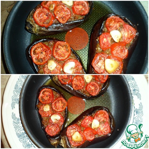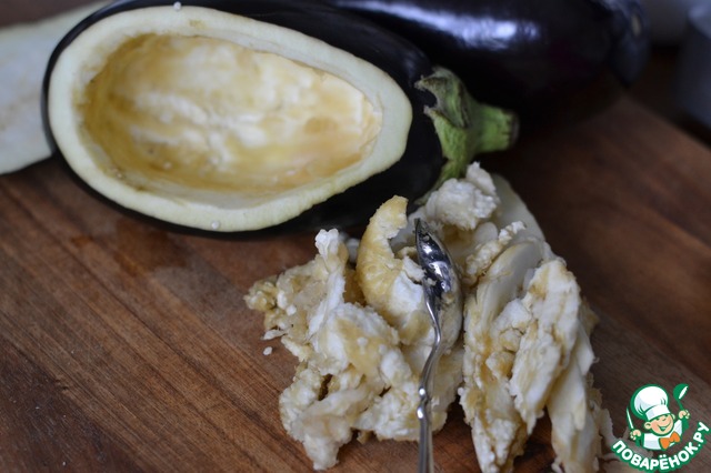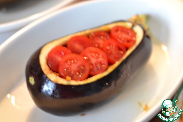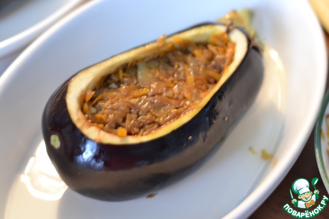 Баклажаны сполоснуть водой и высушить салфетками. Наполнить лодочки баклажана начинкой.