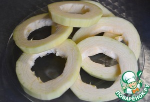 Кабачок нарезаем произвольно. Мне захотелось сделать в виде колечек.