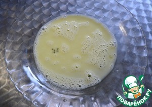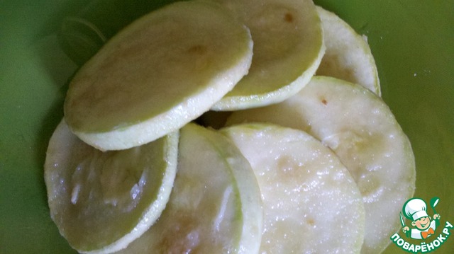 Потом кабачок окунаем в слегка взбитое яйцо.