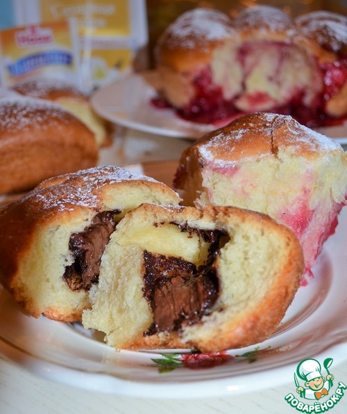 Это один из вариантов вкуснейших австрийских булочек. Традиционно их начиняют джемом, но и с шоколадом они хороши. Рекомендую.